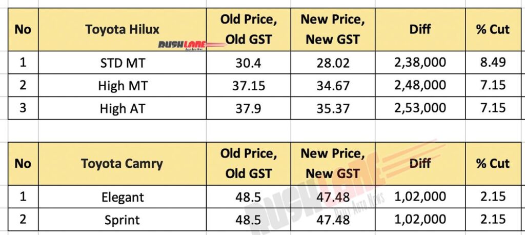 Toyota Hilux 2025 : GST Cut Drives Down Toyota Car Prices